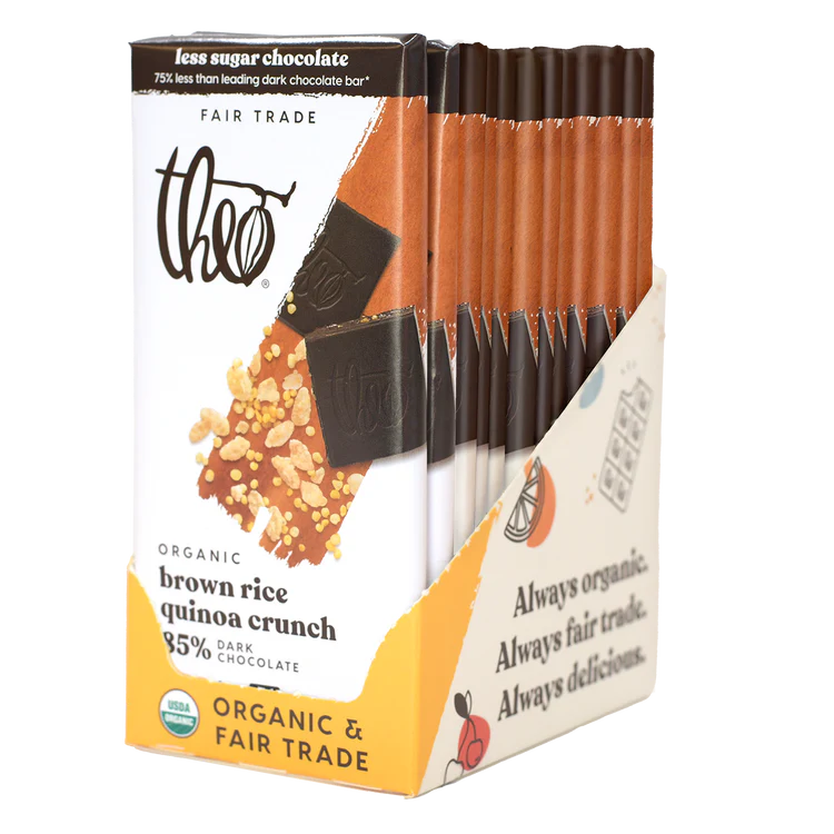 Discover bold flavor and satisfying texture with our Brown Rice Quinoa Crunch 85% Dark Chocolate Bar. This brown rice quinoa crunch 85% dark chocolate bar combines intensely rich dark chocolate with crisped brown rice and toasted quinoa for a delightful crunch in every bite. With 85% cacao, it delivers deep cocoa notes, subtle bitterness, and a smooth finish that true dark chocolate lovers appreciate. The added grains create a balanced texture that enhances both taste and mouthfeel.